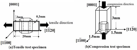Figure 1 shows [1120] tension and [0001] compression test specimens. The size of each specimen was 3
