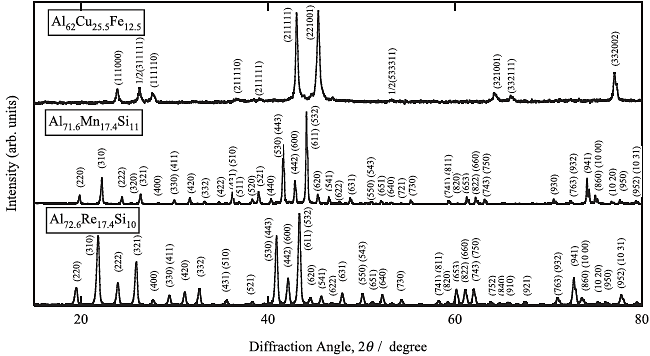 Figure 3 shows XRD patterns of the samples prepared by the induction melting and the subsequent pulsed current sintering process. No evidence of secondary phase precipitation was found in the measured XRD patterns, and the samples were considered to consist solely of the objective phases.