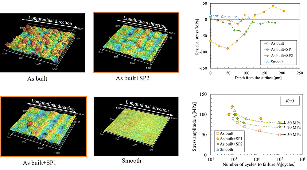 Reduction of surface roughness and introduction of compressive residual stress by SP construction were effective to improve the fatigue strength.
